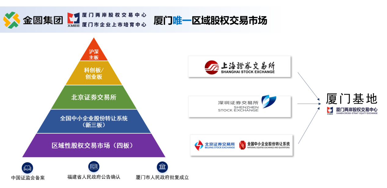 廈門兩岸股權(quán)交易中心(以下簡稱“兩岸股交”)成立于2013年12月,是經(jīng)中國證監(jiān)會備案、福建省人民政府公告確認(rèn)、廈門市人民政府批準(zhǔn)設(shè)立的福建省區(qū)域性股權(quán)市場運營機構(gòu),是“廈門市企業(yè)上市培育中心”,滬、深、北證券交易所及全國股轉(zhuǎn)系統(tǒng)廈門服務(wù)基地運營機構(gòu),全國首個兩岸資本市場服務(wù)基地和廈門“專精特新”專板運營機構(gòu)。